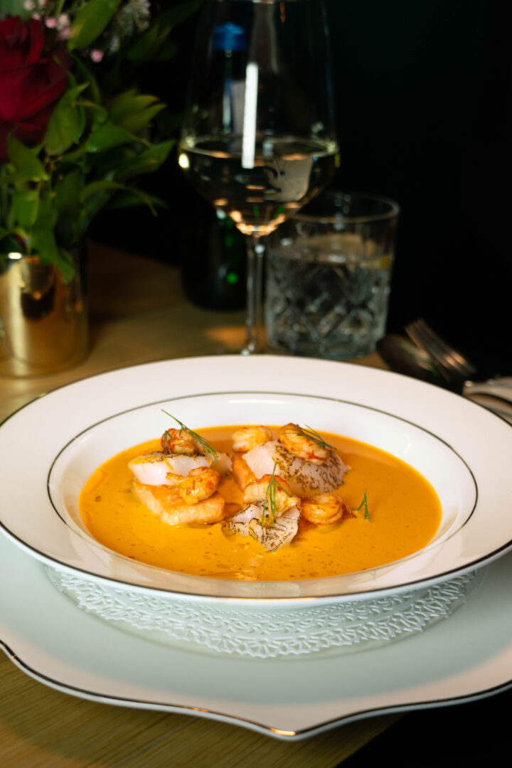 Wśród zup warto wyróżnić aromatyczny barszcz czerwony (także w wersji vege) oraz jedwabistą zupę rakową z nutą szafranu i świeżymi owocami morza.