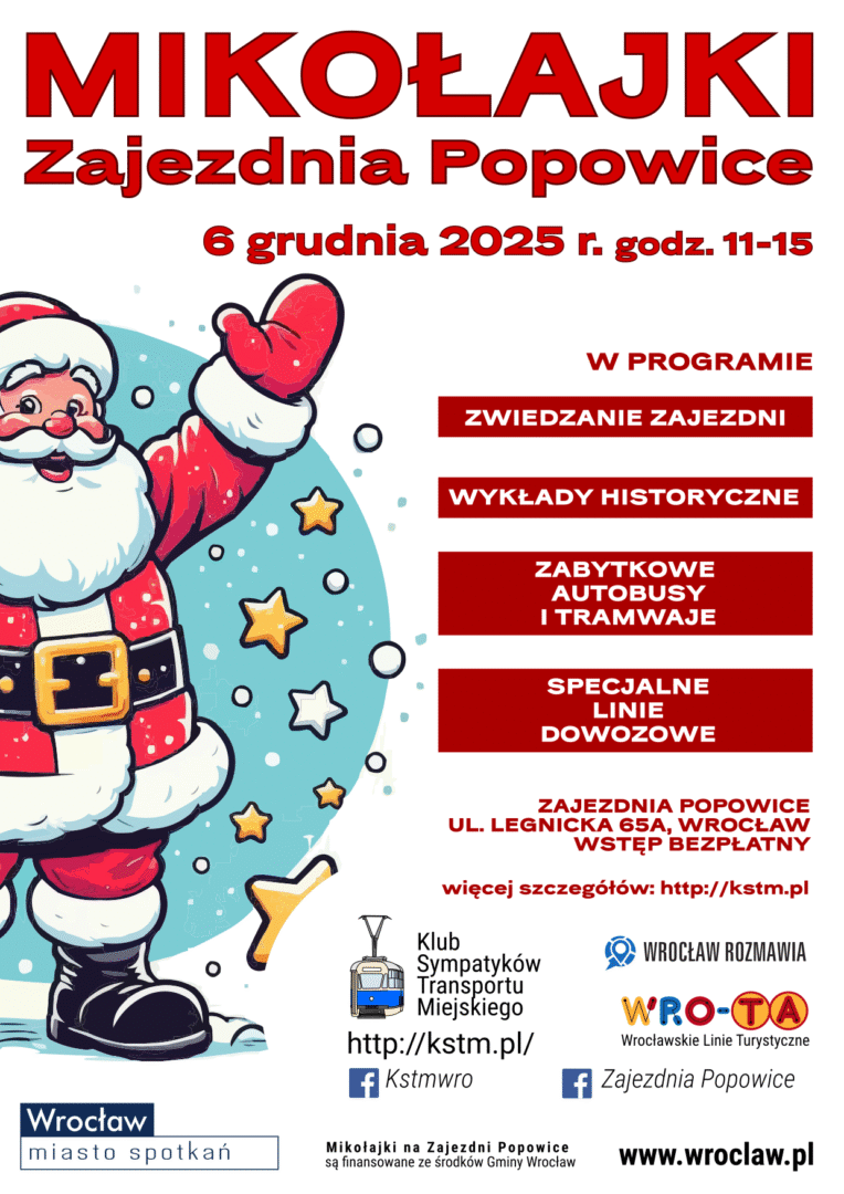 Już niebawem w sobotę 6 grudnia 2025 r. Zajezdnia Popowice przy ul. Legnickiej 65a ponownie otworzy swoje bramy dla wszystkich spragnionych komunikacyjnych wrażeń, lecz tym razem w zimowej odsłonie. Klub Sympatyków Transportu Miejskiego zaprasza na wydarzenie od godz. 11:00 do 15:00.