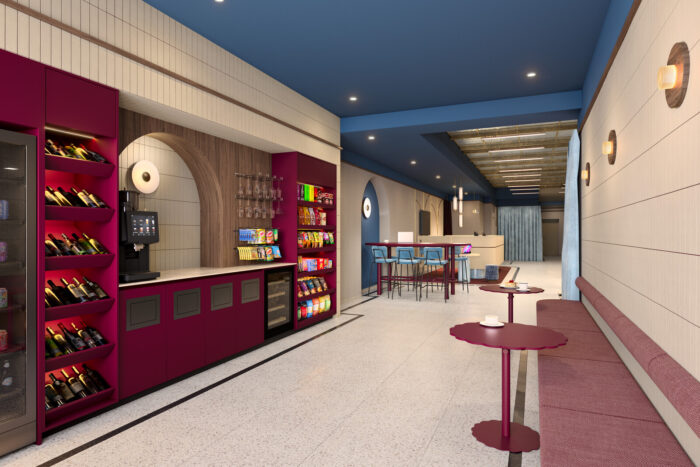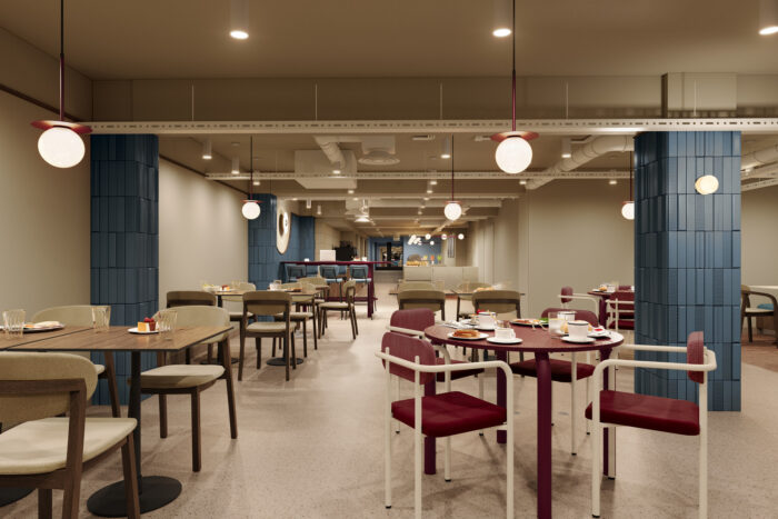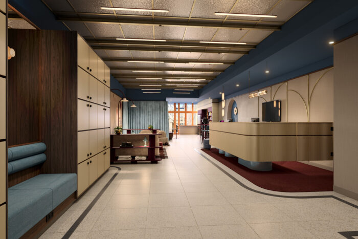 się w modernistyczne dziedzictwo budynku. Wystrój subtelnie odwołuje się do estetyki Art