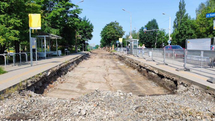 MPK Wrocław już od 31 maja prowadzi prace na ul. Kosmonautów – głównej arterii komunikacyjnej zachodniego Wrocławia. Do wymiany jest tutaj ostatni fragment trasy do Leśnicy, który wymagał przebudowy. – To kompleksowy remont odcinka od ul. Jeżowskiej do przystanku „Jeleniogórska”. W ramach prac zdemontowano już sieć trakcyjną na odcinku od ul. Kamiennogórskiej do ul. Rawickiej i całkowicie zdjęto już stare torowisko na całej długości remontowanego odcinka. W jego miejsce położone zostaną nowe szyny, w międzytorzu zasadzone zostaną rośliny a na trasie 96 drzew. Torowisko będzie zielone –informuje Daniel Misiek, rzecznik prasowy MPK Wrocław.