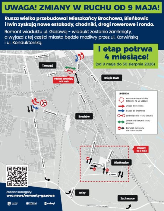 9 maja nastąpi wyłączenie z ruchu wiaduktów w ciągu ul. Gazowej. Wyjazd