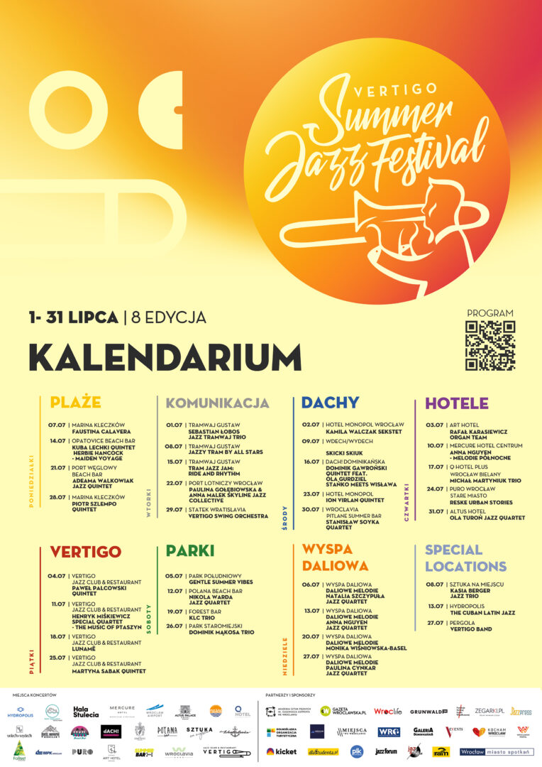 Gdyby lipiec miał swój soundtrack, we Wrocławiu bez wątpienia brzmiałby jazzem. A wszystko za sprawą VIII edycji Vertigo Summer Jazz Festival, który pod hasłem „Wrocław pełen jazzu” zamienia miasto w wielką, roztańczoną scenę. Przez cały miesiąc muzyka rozbrzmiewa tam, gdzie zwykle króluje codzienność: w tramwajach, parkach, na plażach, a nawet… na dachach hoteli.