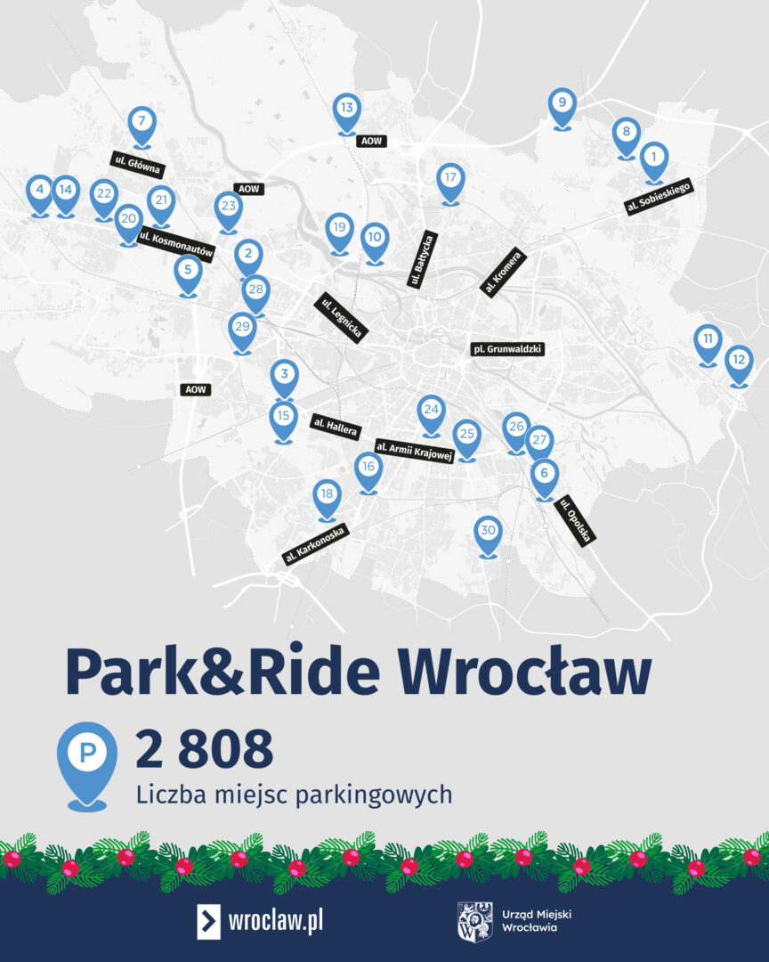 Aby uniknąć stresu, można skorzystać z jednego z 36 parkingów Park&Ride. Na parkingach P&R we Wrocławiu dostępnych jest 2808 miejsc postojowych.