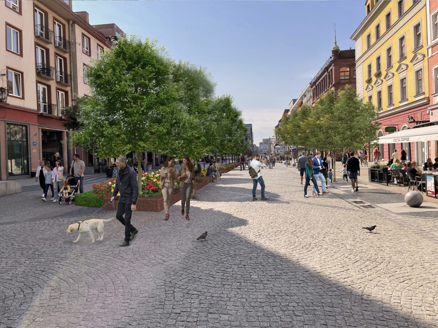 Projekt przewiduje przebudowę nawierzchni, fragmentów placu i chodników oraz wprowadzenie elementów małej architektury. Pojawią się nowe siedziska, obrzeża z kostki kamiennej i płyt granitowych oraz kraty wokół drzew. Wszystko zostanie podłączone do systemu automatycznego podlewania, co zapewni roślinom odpowiednie nawodnienie i warunki do rozwoju.