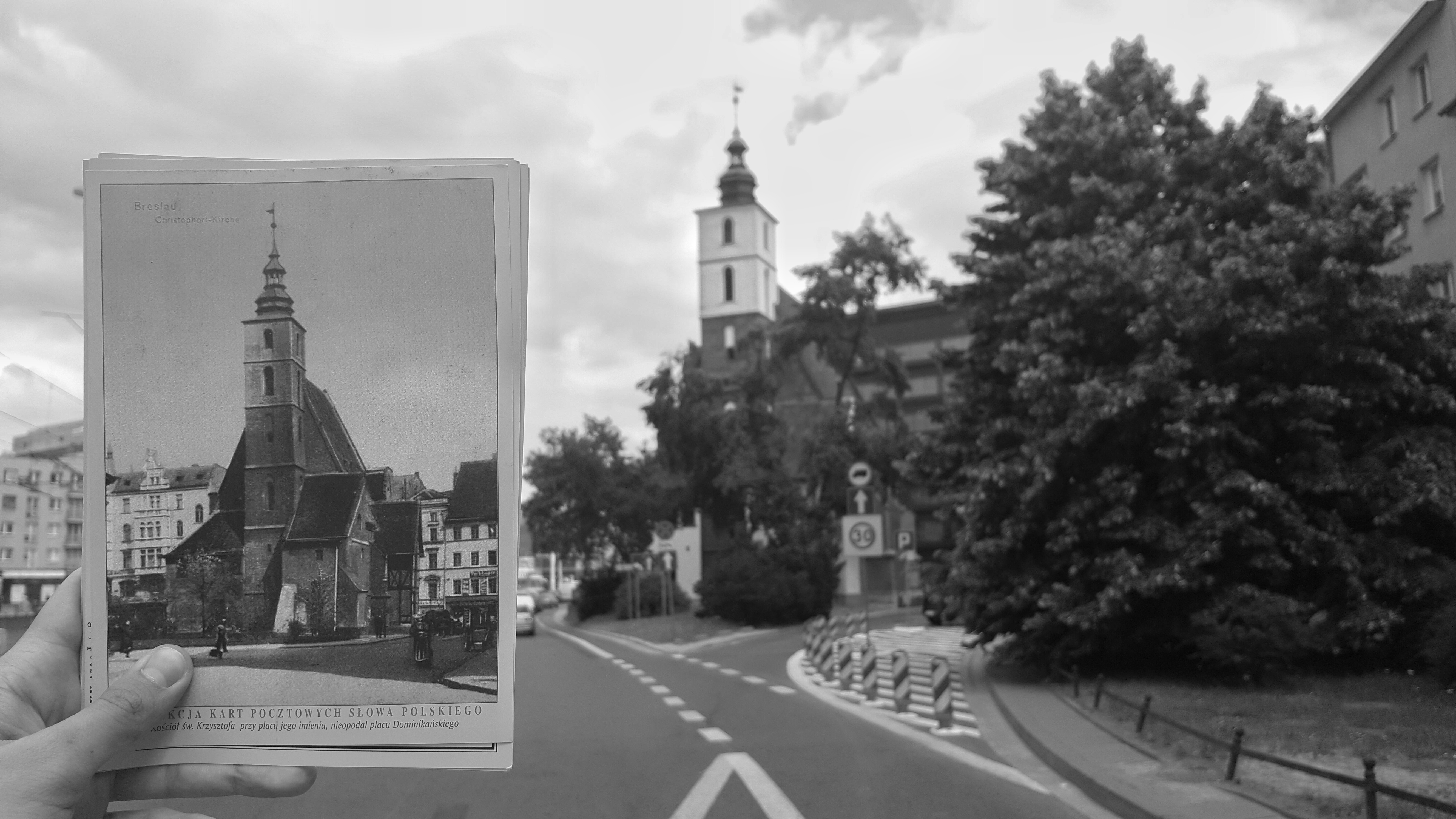 Plac Królewski (Königsplatz) w 1917 roku i obecnie.Ulica Powstańców Śląskich. Na zdjęciu widzimy Galeriowiec Południowy wzniesiony w latach 1976 roku, wcześniej w tym miejscu znajdował się szereg kamienic. Ulica Powstańców Śląskich była niegdyś najbardziej okazałą arterią miasta, przy której znajdowało się kilkanaście zagranicznych ambasad. Na Kaiser Wilhelm Strasse znajdowały się wytworne wille najbogatszych mieszkańców Breslau oraz bogate kamienice z mieszkaniami o powierzchni 300 mkw. W 1945 r. podczas oblężenia Breslau ulica jak i zabudowa została doszczętnie zrównana z ziemią. Jedyną, rzeczą, która została po dawnej zabudowie tej ulicy jest drogowa kostka brukowa… Zachodnia strona Rynku, zwana Stroną Siedmiu Elektorów (niem. Sieben-Kurfürsten-Seite), posiada najwięcej zachowanych oryginalnych zabytków – renesansowych i manierystycznych kamienic na zrębie gotyckim, gdyż II wojnę światową przetrwała prawie nieuszkodzona. Kamienice tej strony posiadają bardzo głębokie działki (240 stóp), sięgające ul. Kiełbaśniczej (przypuszczalnie wtórnie scalone), gdyż należały niegdyś do najznamienitszych patrycjuszy.Plac Tadeusza Kościuszki, niegdyś Tauenzienplatz. Kartka pokazuje stan placu na rok 1895 rok. Dom Towarowy Renoma został wybudowany dopiero 35 lat później, w 1930 roku.Na pocztówce widzimy Pomnik Cesarza Wilhelma I – króla Prus i pierwszego Cesarza Niemieckiego. Pomnik został zrzucony z cokołu w dniu 21 października 1945. Pół wieku później w 2007 roku w jego miejsce postawiono pomnik polskiego króla Bolesława Chrobrego.Na pocztówce możemy zobaczyć secesyjny dom towarowy braci Barasch, który został oddany do użytku w 1904 roku. Budynek charakteryzował się przepychem, luksusem i elegancją. W swojej oryginalnej formie przetrwał niewiele ponad 20 lat. W 1929 r. zlikwidowano zarówno globus, jak i wielkie secesyjne okno zwrócone ku ratuszowi.Kościół św. Krzysztofa znajdujący się tuż przy ul. Kazimierza Wielkiego. Wzniesiony ok. 1409 r. przez Henryka z Ząbkowic, powiększony o wieżę w 1461 r., restaurowany w XVI i XVII w., zniszczony w 1945 r., zabezpieczony w latach 1947-1950, odbudowany w 1959 r. fot. Bartek WnękOpera pod koniec XIX wieku i 120 lat później.Widok z Bulwaru Xawerego Dunikowskiego. Szpital św. Józefa i nowicjat sióstr Szarytek. Na pierwszym planie słynna Germania, statek spacerowy, obiekt wielu fotografii.