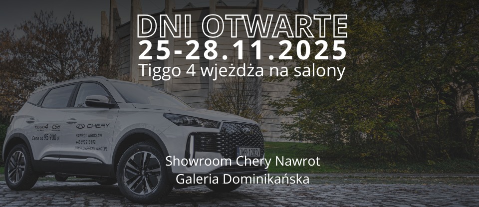 W dniach 25-28 listopada zapraszamy wszystkich na Dni Otwarte w naszym salonie Chery Nawrot w Galerii Dominikańskiej!